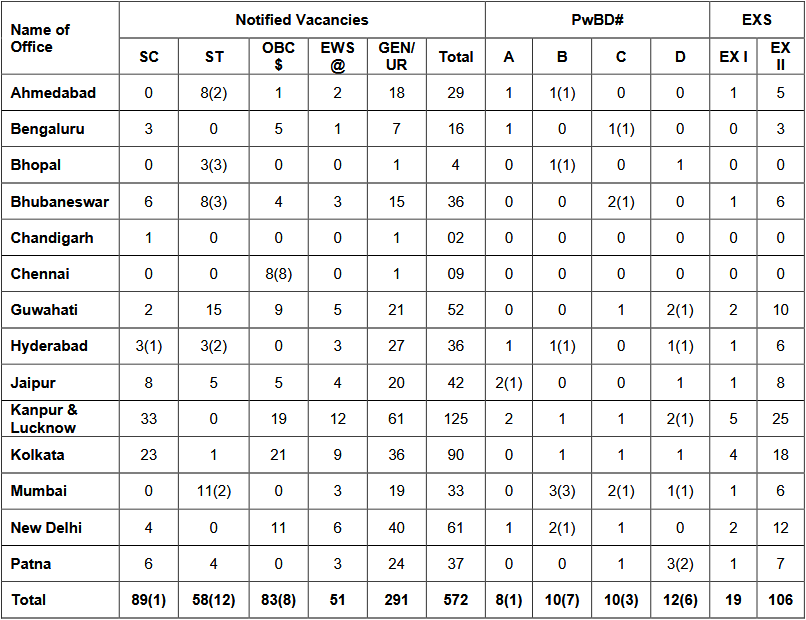 आरक्षित वर्गों को आयु में छूट RBI नियमों के अनुसार मिलेगी।